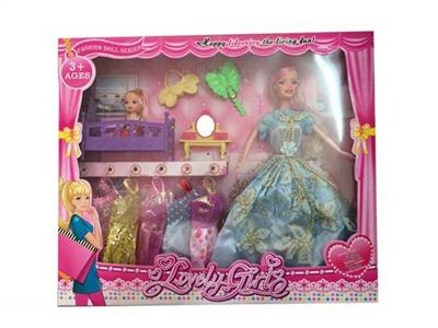 - 11.5寸实身晚装芭芘配衣服小芭芘床手提包梳子梳装台发布日期 :2015-11-06