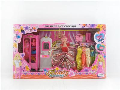 - 实身晚装芭芘配衣服梳妆台靴手提袋梳衣柜发布日期 :2014-12-05