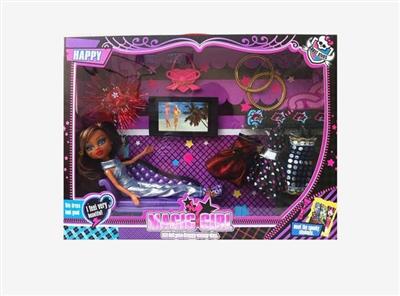 - 9寸实身晚装僵尸芭芘配梳妆台手提袋梳椅子吉他头饰发布日期 :2014-09-22