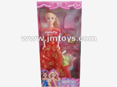 - 11.5寸实身晚装芭芘配衣服手提袋梳梳妆台发布日期 :2014-07-23