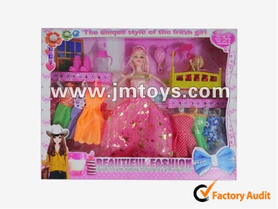 - 11.5寸实身晚装芭芘配衣服靴奶瓶梳婴儿床发布日期 :2014-06-27