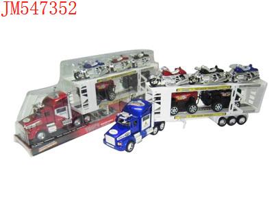 - 喷漆惯性双层平板车载3只滑行摩托车2只滑行皮卡车(红蓝黑)发布日期 :2011-09-26