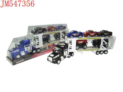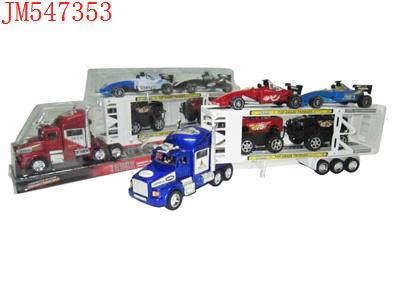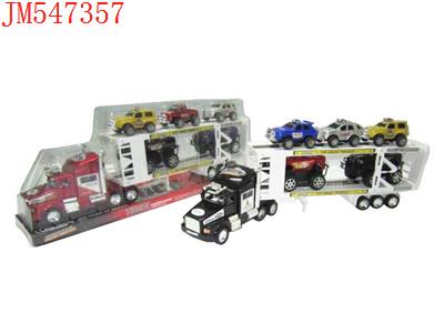 - 喷漆惯性双层平板车载2只惯性赛车2只滑行越野车(红蓝黑)发布日期 :2011-09-26