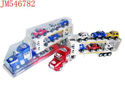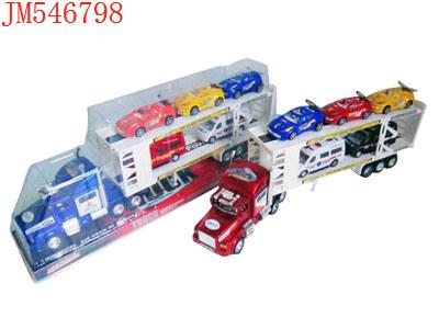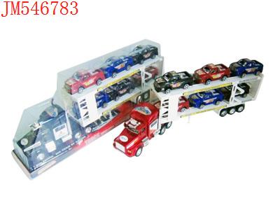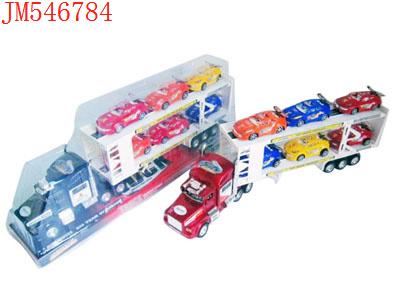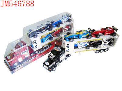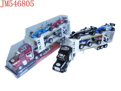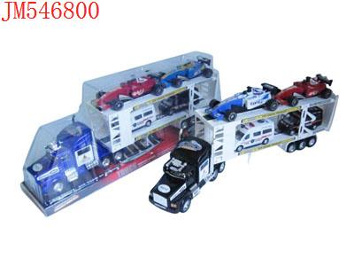- 喷漆惯性双层平板车载2只惯性赛车(红蓝黑)发布日期 :2011-09-21