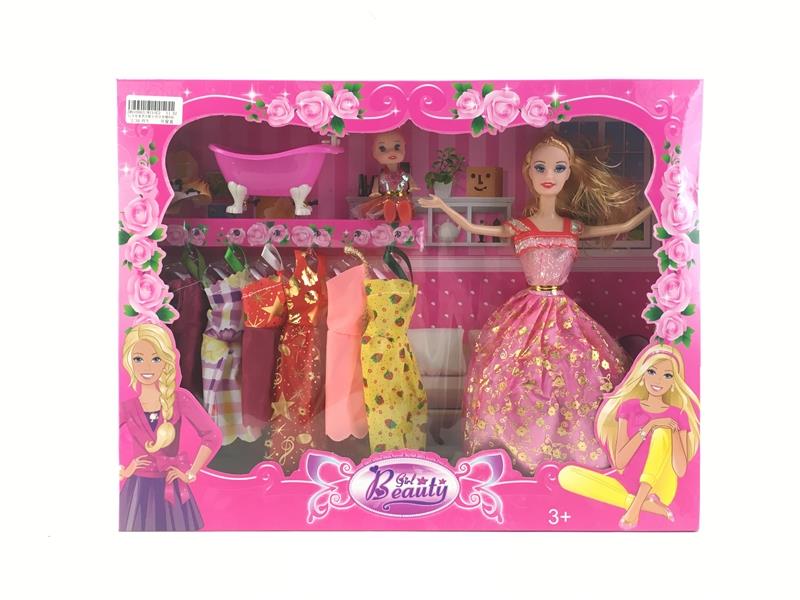 - 11寸实身芭比配小芭比衣服皇冠行礼箱浴缸发布日期 :2017-07-26