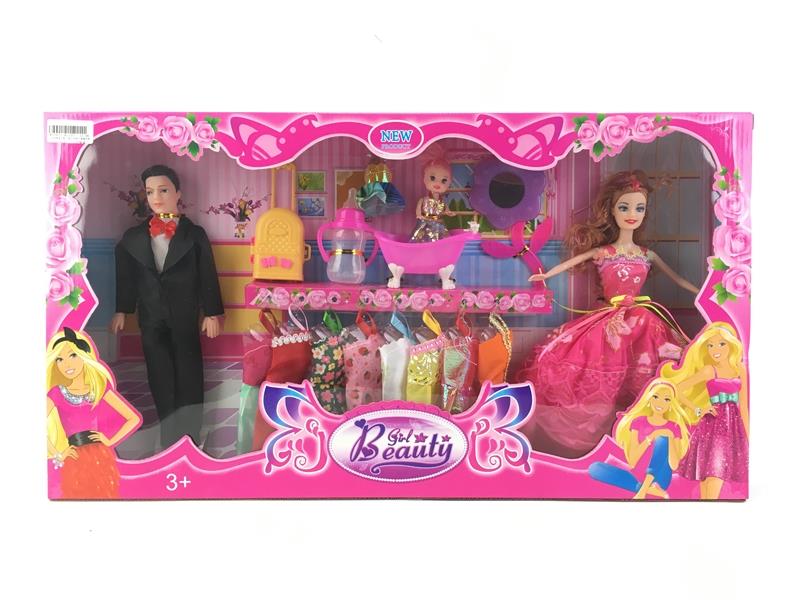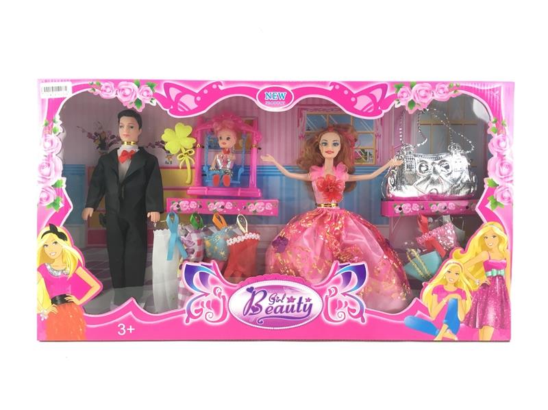- 11寸实身夫妻芭比配小芭比衣服包梳子发布日期 :2017-07-26