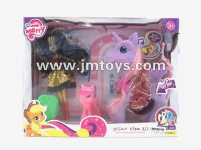 - 2只大小灯光音乐搪塑精灵马配芭比梳旅行箱发布日期 :2014-09-04